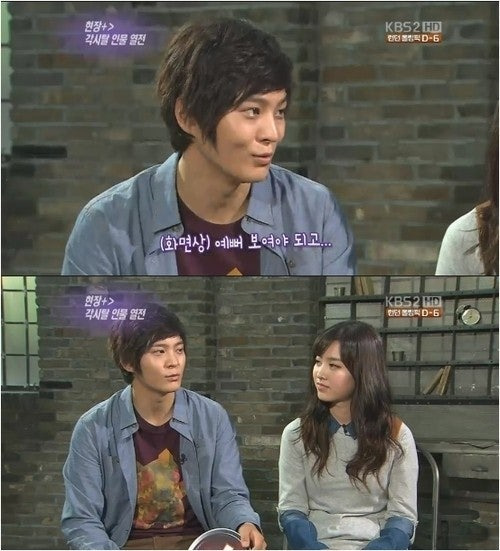 주원은 배우 진세연과 KBS2 드라마 ‘각시탈’에서 애절한 사랑 연기를 선보인 바 있는데요. 당시 ‘각시탈’ 녹화 현장에서 이뤄진 진세연과 주원의 키스신에서 감독은 진한 키스를 나누는 두 사람에게 “뽀뽀를 하라니까 키스를 하고 있어”라고 지적했습니다. 이에 주원은 “(키스를) 얼마나 기다렸겠어”라고 응수해 폭탄 웃음을 전했습니다.
