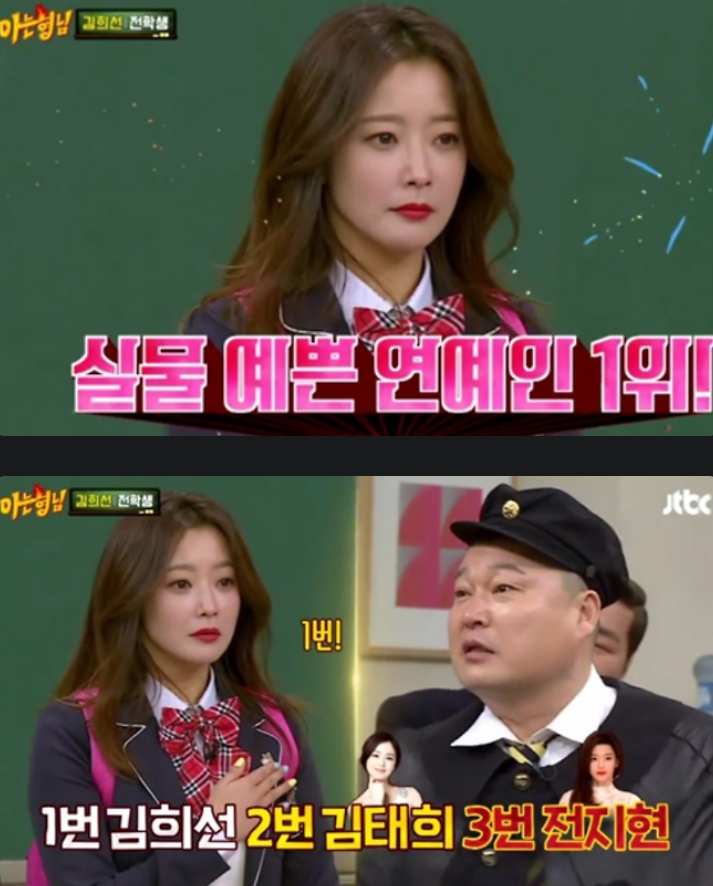 JTBC <아는 형님>에 출연했던 김희선 은 강호동의 질문에, “1번 김희선, 2번 김태희, 3번 전지현 중 누가 가장 예쁜 것 같냐”는 질문을 받자 망설임 없이 “1번이요”라고 답하며 웃음을 자아냈는데요. 이어서 “세 분 다 너무 매력있고 좋지만, 다 내 대를 잇는 친구들”이라는 멘트로 현장을 폭소케 하기도 했죠.