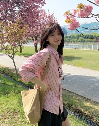 • 과거 강민경 스타일: 자연스러운 캐주얼룩, 여성스러운 분위기