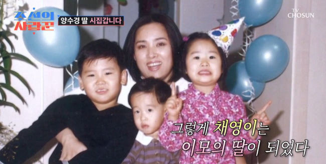 양수경은 지난 2009년 여동생이 세상을 떠나면서 그녀의 첫째 아들과 둘째 딸 채영 씨, 막내 친아들까지 정식으로 입양했습니다. 그렇게 혼자서 16년 동안 친자녀들처럼 돌봤던 것이었습니다.