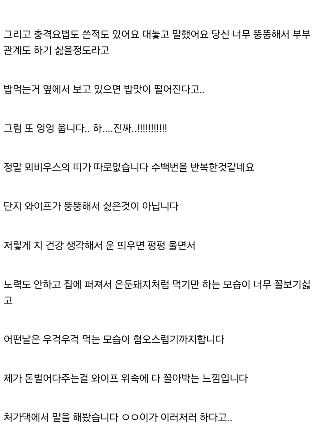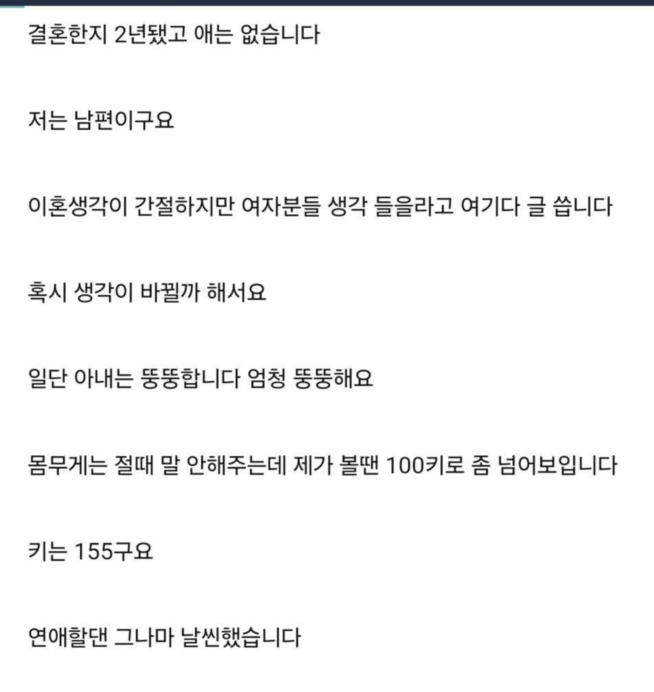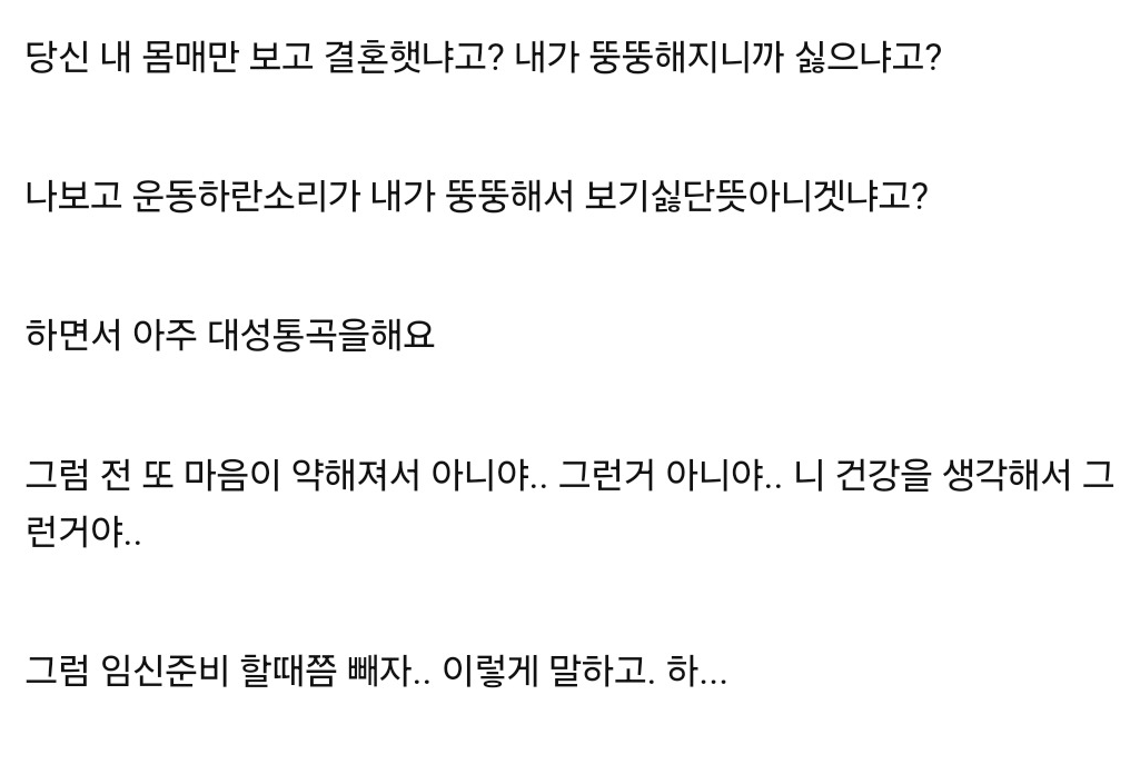 뚱뚱한 와이프랑 이혼하고 싶다는 남편