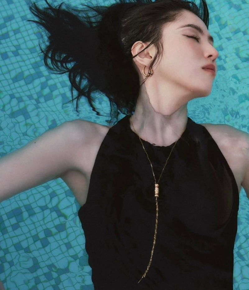 한소희 배우를 볼 때마다 느끼는 건, 눈매가 고양이처럼 매혹적이라는 거예요. 💖 그래서인지 여성 팬들도 엄청 많죠! 착용한 의상(이라고 해야 할지, 수영복이라고 해야 할지…😅)은 심플하면서도 고급스러움을 잃지 않았고, 한소희 씨의 가녀린 몸매 라인을 더욱 돋보이게 하는 것 같아요.
