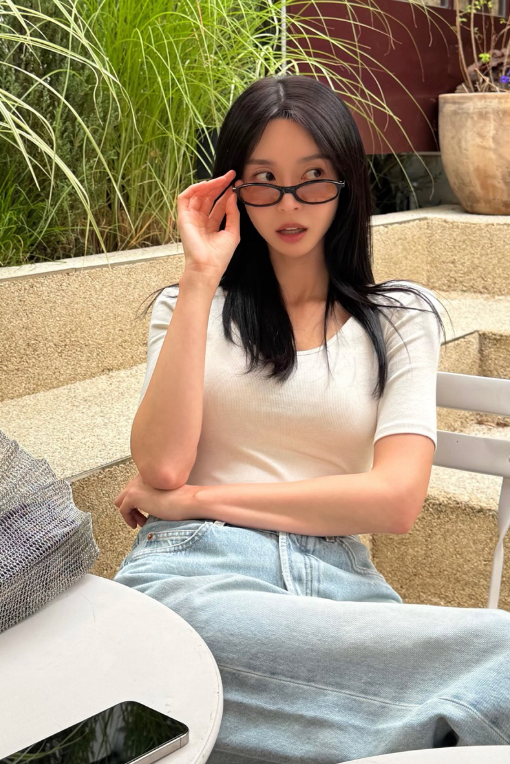 가장 심플하지만 가장 강력한 존재감, 바로 흰티죠. 권나라 님은 과한 디테일 없이 깔끔한 화이트 티셔츠로 상큼한 청순미를 강조했어요. 담백한 라운드넥 디자인은 얼굴형을 돋보이게 해주고, 가벼운 원단감 덕분에 여름철 데일리룩으로 손색없는 선택이었답니다.