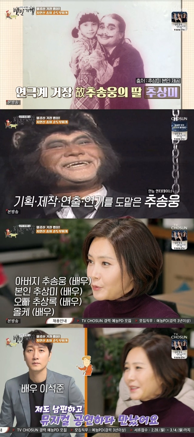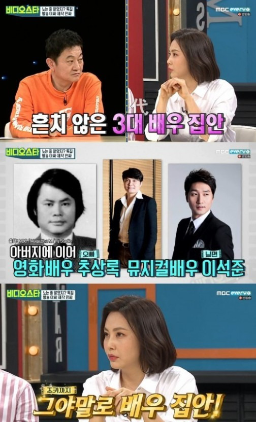 이어 추상미는 "저희 집은 좀 특이하게 저도 그렇고 오빠(추상록)도 배우하고 와이프(올케)도 배우 출신이고 저도 남편(이석준)과도 뮤지컬 공연하다 만났다"라고 말해 눈길을 끌었습니다.