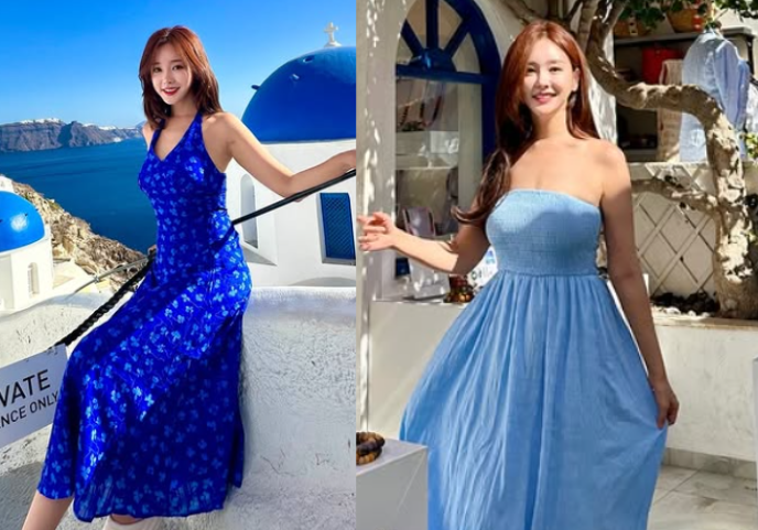 최근 공서영은 SNS를 통해 여름 여행 중 찍은 사진을 공유했는데요, 블루 플라워 나시 원피스가 단연 눈길을 끌었습니다. 상체는 핏되게, 하의는 자연스럽게 너플지는 실루엣으로, 어깨와 팔 라인을 우아하게 강조한 룩이었습니다.