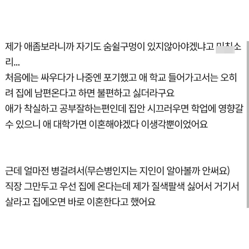 병든 남편 버리려는데 제가 잘못한건가요?