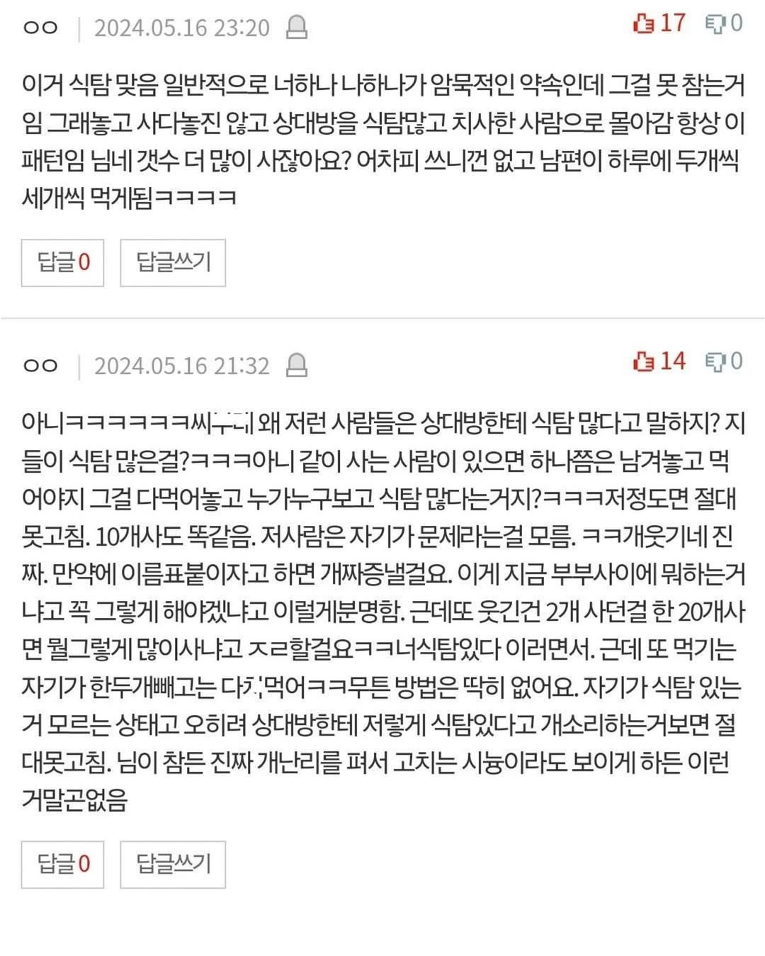 부부끼리 식탐문제 어떻게 해결하셨나요?