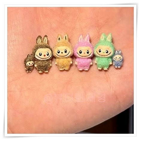 현재는 키링으로 큰 인기를 얻고 있지만, 손바닥 위에 올릴 수 있는 초미니 사이즈도 출시되어 화제를 모으고 있어요. 카피바라 인형이 공책, 폰케이스 등 다양한 상품으로 출시되었듯이, 라부부 키링 역시 다이어리, 폰케이스, 의류 등으로 그 영역을 확장할 것으로 예상됩니다. 개인적으로 카피바라 인형 이후 이렇게 마음에 드는 캐릭터는 라부부가 처음인 것 같아요. 눈, 입, 토끼 탈까지, 모든 요소가 매력적이고 시선을 사로잡아 포인트를 주기에 완벽하죠. 알록달록한 색상과 다양한 옵션 덕분에 모으는 재미도 쏠쏠하답니다.