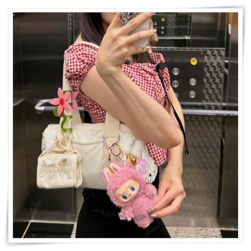 가방을 메고 있는 건지, 라부부를 메고 있는 건지 모를 정도로 묵직하지만, 그만큼 예쁘다는 사실! 유독 카피바라 인형보다 비싼 가방과 많이 매치되는 라부부 키링. 그 사랑스러움은 인정할 수밖에 없네요. 🥰