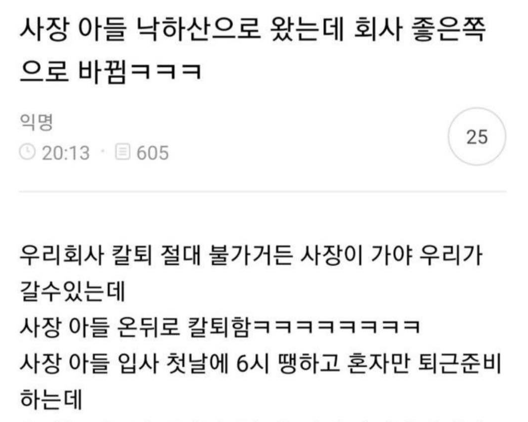 사장아들이 낙하산으로 왔는데 구조낙하산이었음..