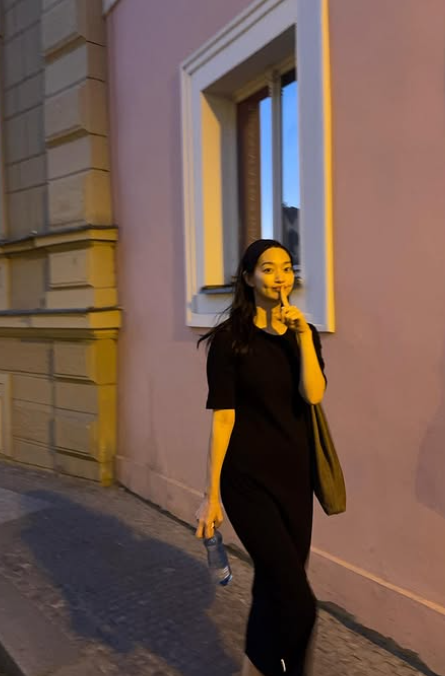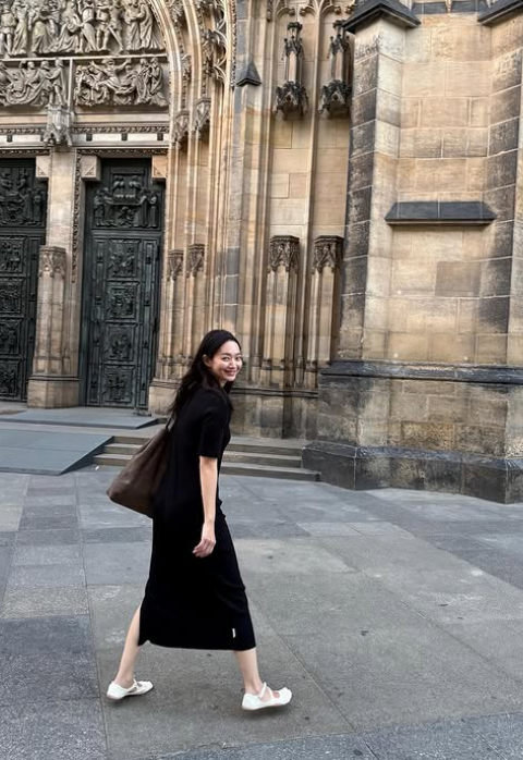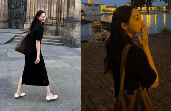 최근 신민아는 블랙 롱원피스에 브라운 숄더백을 매치하여 심플하면서도 세련된 여행룩을 선보였습니다. 여기에 화이트 단화를 신어 편안하면서도 스타일리시한 느낌을 주었고, 블랙 헤어밴드를 착용하여 러블리함을 더했습니다. 그녀의 여행룩은 편안하면서도 우아한 매력을 발산하고 있습니다.