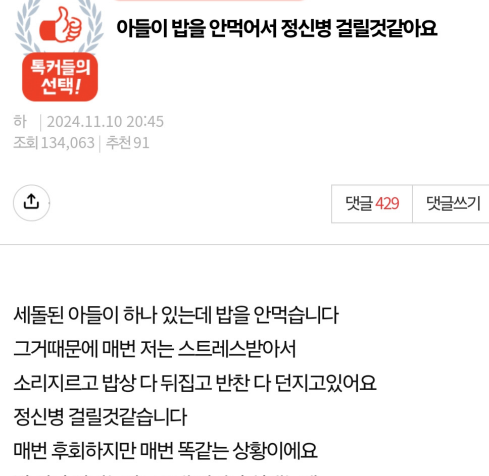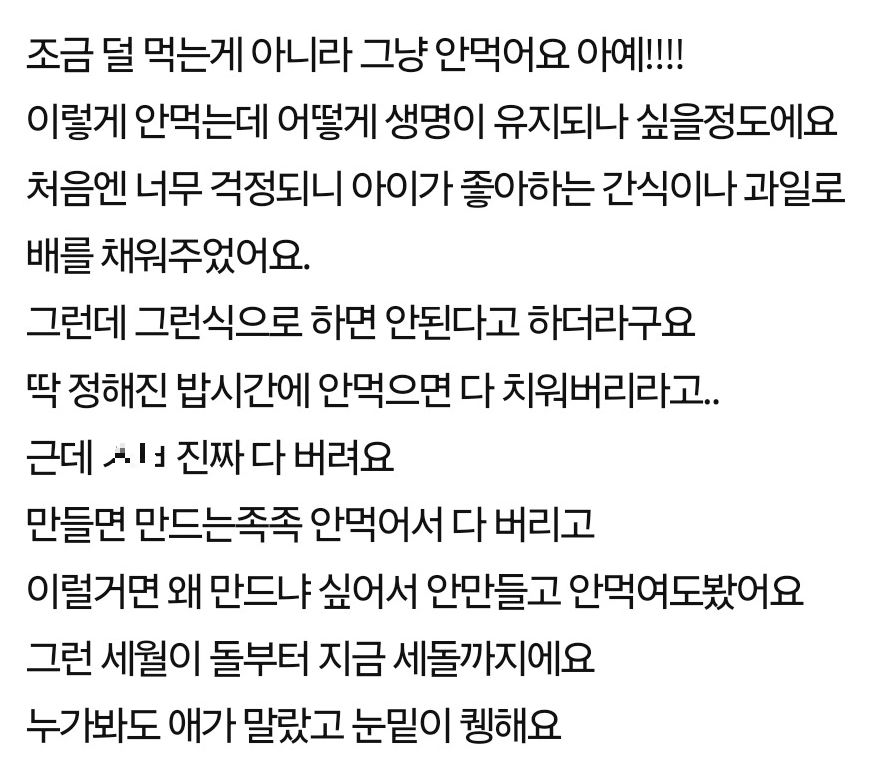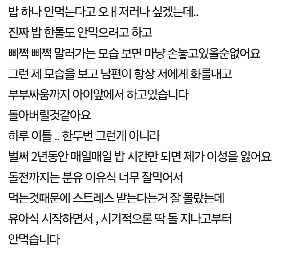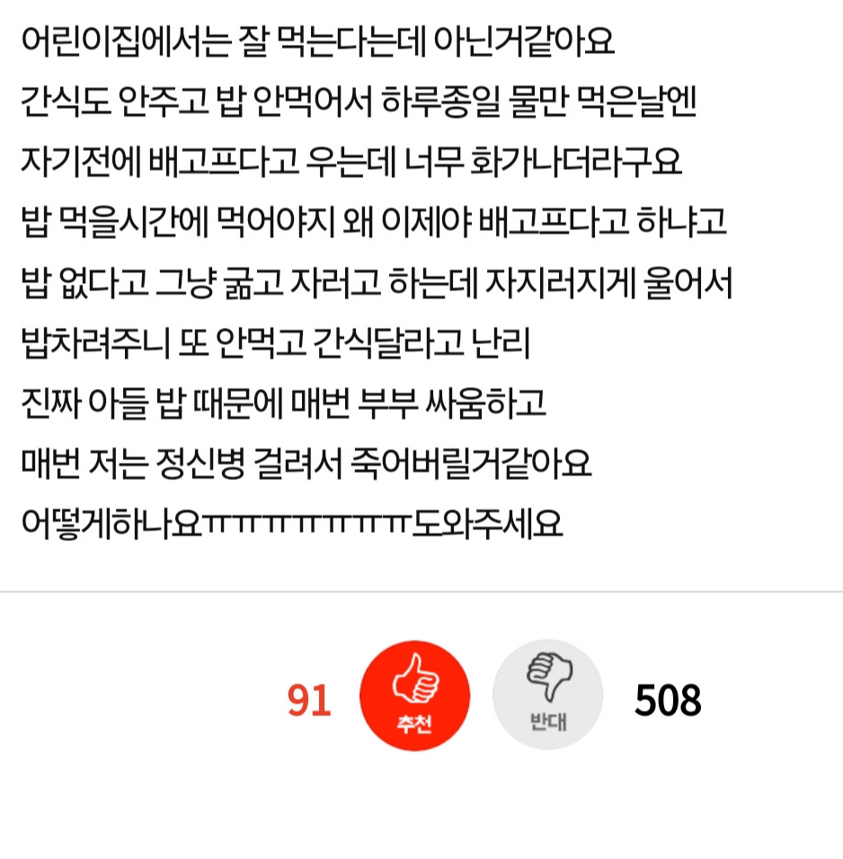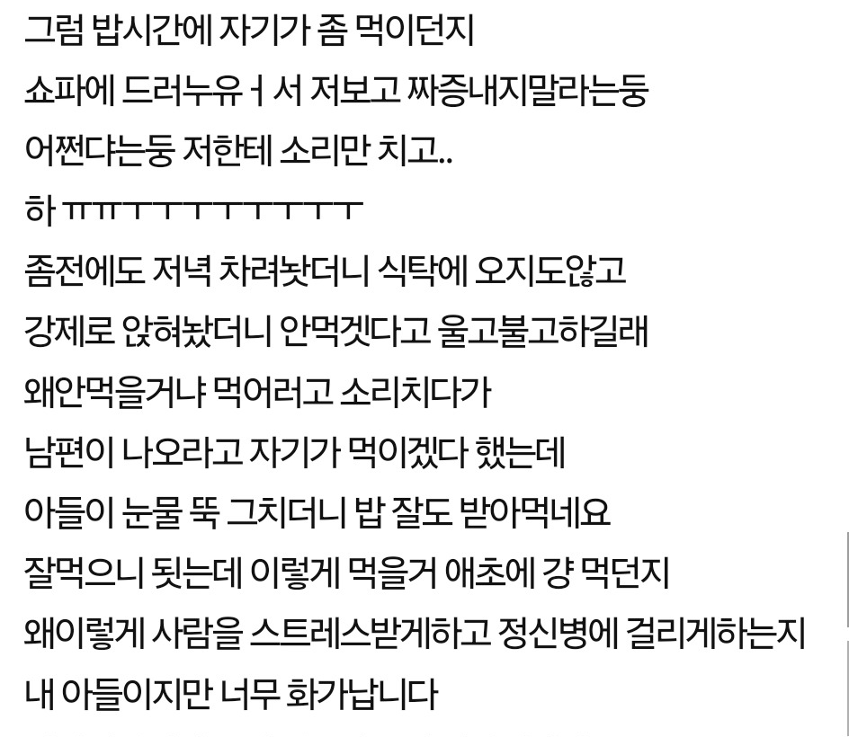 아들이 밥을 안먹어서 정신병 걸릴것 같아요