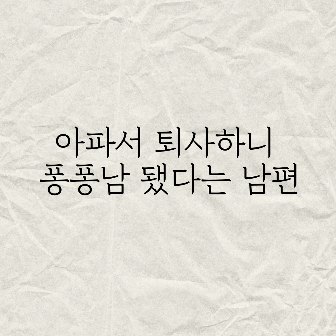 아파서 퇴사하니 퐁퐁남 됐다는 남편