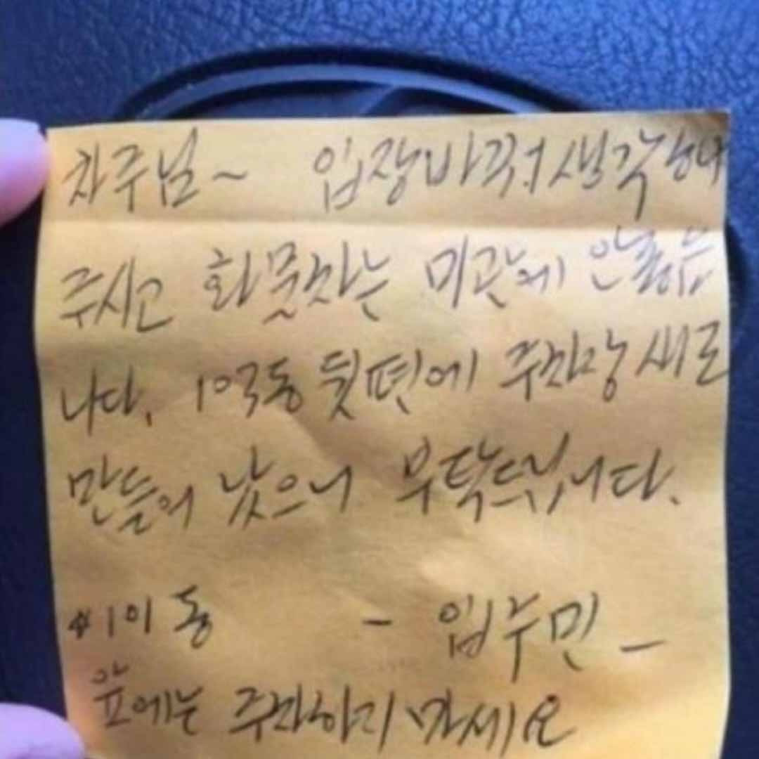 아파트 주차장에서 쪽지를 받았습니다..