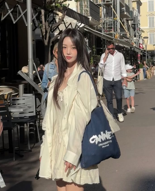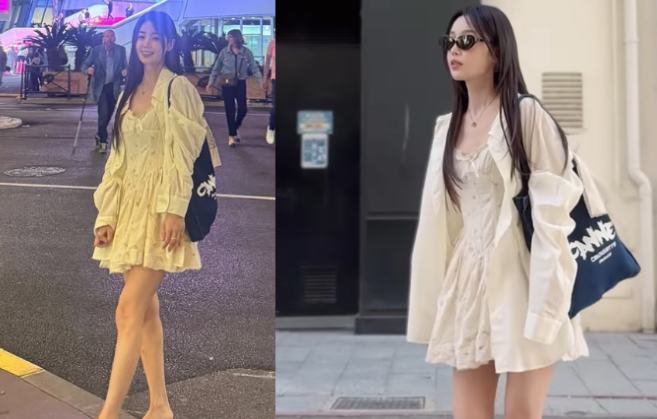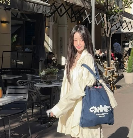 최근 남규리는 루즈한 화이트 셔츠에 짧은 미니 원피스를 매치해 여전히 빛나는 비주얼을 선보였는데요. 오버핏 셔츠는 여리여리한 분위기를 극대화하고, 화이트 미니 원피스는 맑고 깨끗한 이미지를 더욱 강조해줬어요. 여기에 데님 소재의 에코백을 더해 캐주얼하면서도 사랑스러운 포인트를 주었습니다.