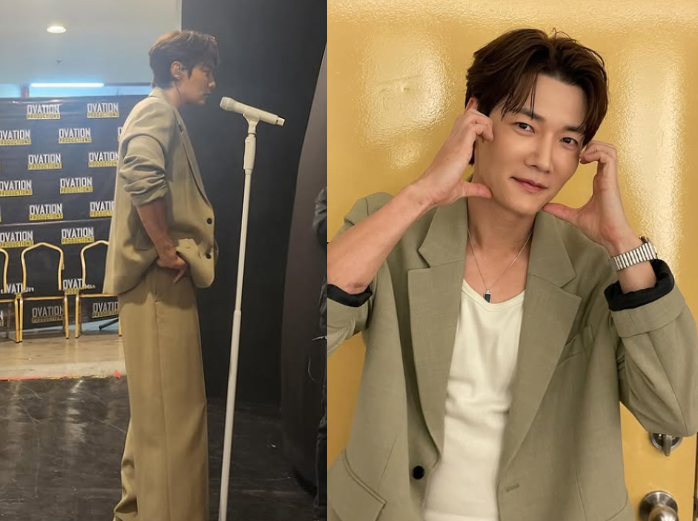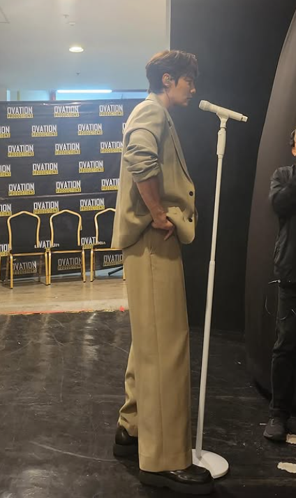 최진혁 님은 깔끔한 베이지톤 셋업룩을 선보이며 멋스러움을 뽐냈습니다. 부드러운 톤의 베이지 컬러 재킷에 같은 컬러의 와이드팬츠를 매치해 전체적으로 차분하고 고급스러운 분위기를 연출했는데요. 안에는 심플한 흰 티셔츠를 입어 전체적으로 정돈된 인상을 더했고, 실버 목걸이와 메탈 시계로 은은한 포인트를 더했어요.