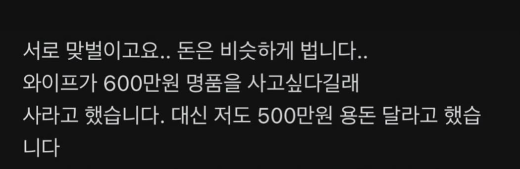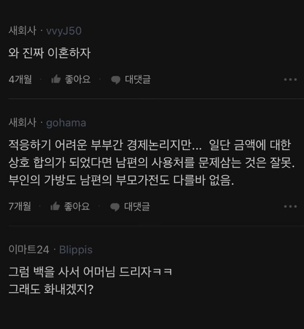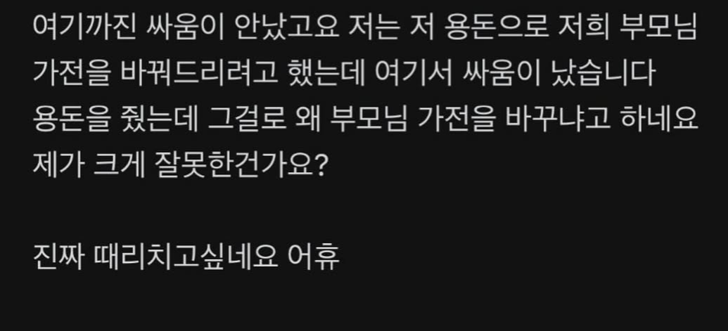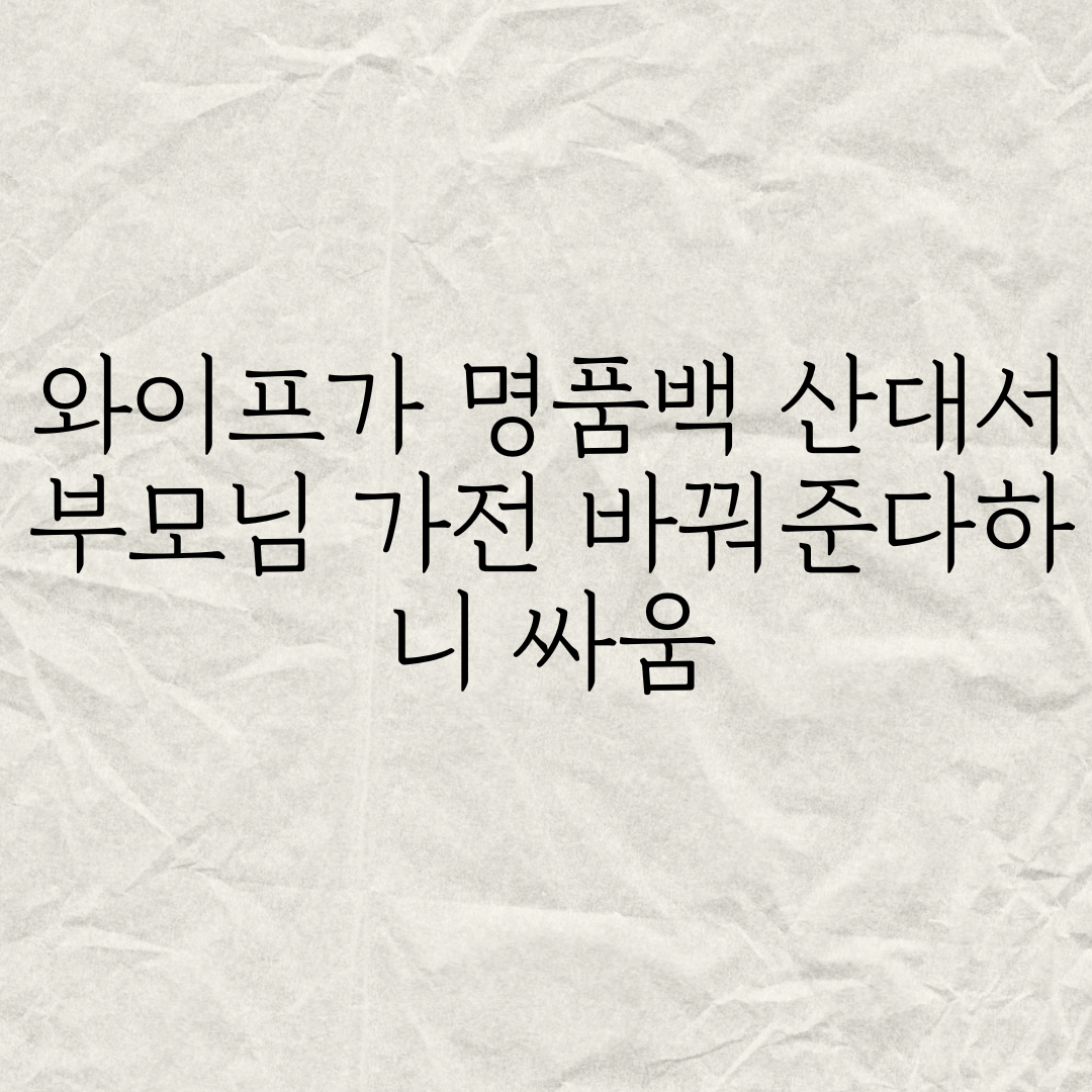 와이프가 명품백 산대서 부모님 가전 바꿔준다하니 싸움