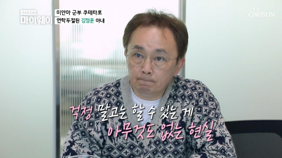 현재 김정훈의 아내는 미얀마, 딸은 홍콩, 아들은 캐나다에서 머물고 있습니다. 김정훈은 "(아내가 있는) 미얀마에 되게 가고 싶다. 그렇지만 부모님이 연로하시기 때문에 내가 한국에 남아서 돌봐야 한다"라고 효심을 드러냈습니다.