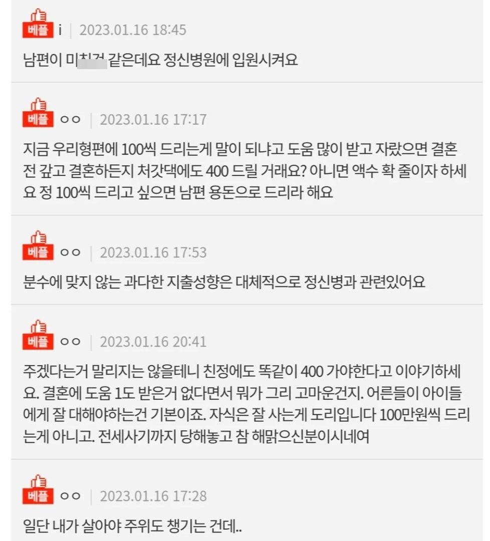 전세사기 당했는데 시댁어른들 용돈..