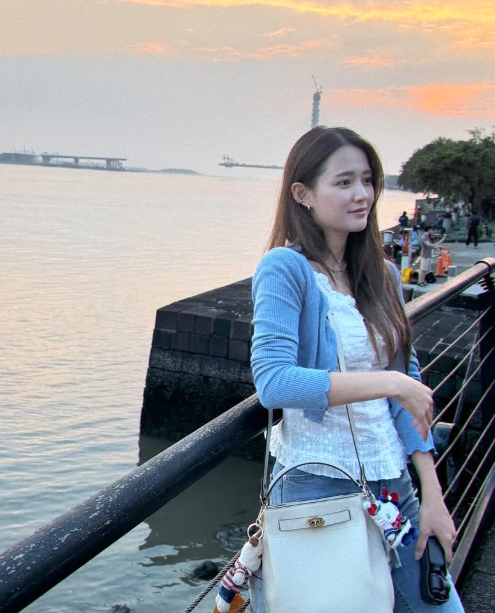 여기에 깔끔한 크림 컬러의 숄더백을 매치해 전체 룩에 밝고 산뜻한 포인트를 더했다.