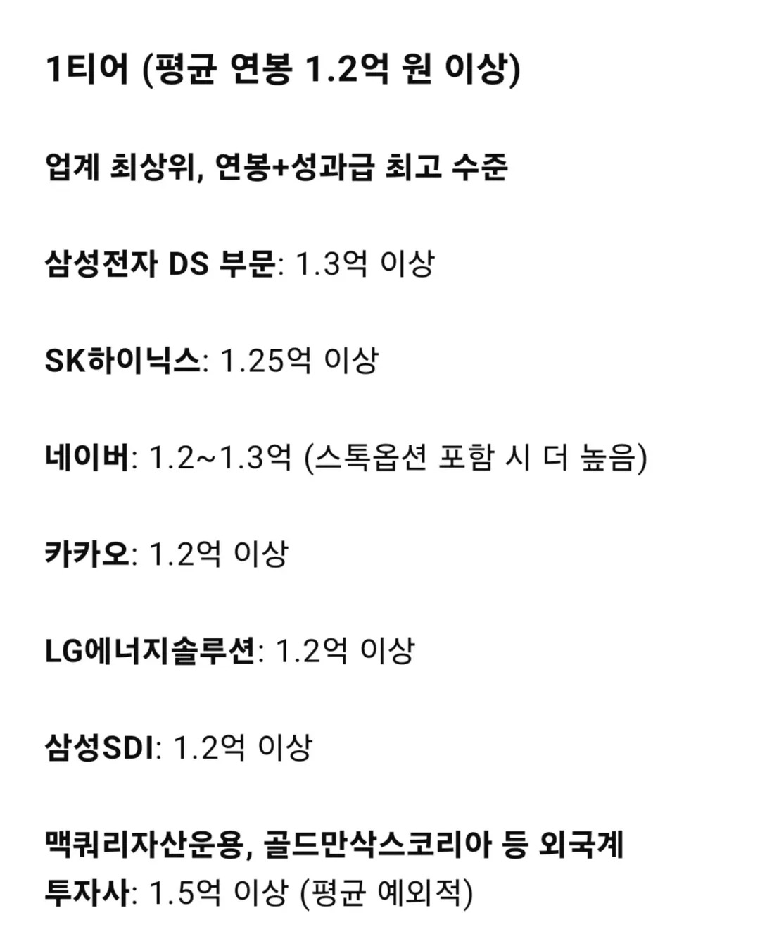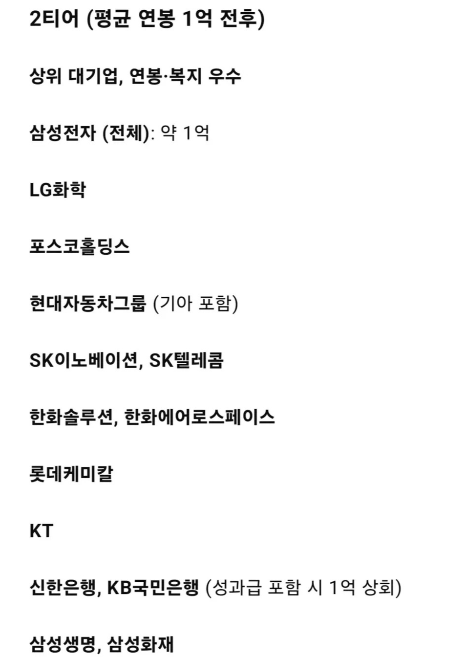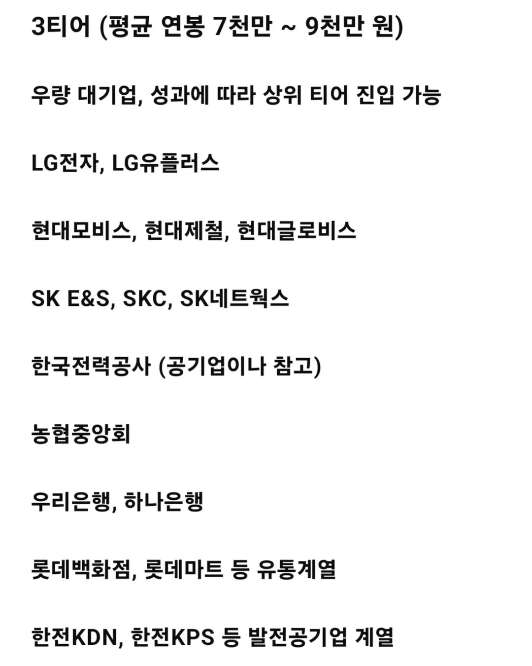 평균연봉으로 정리해본 대기업 티어