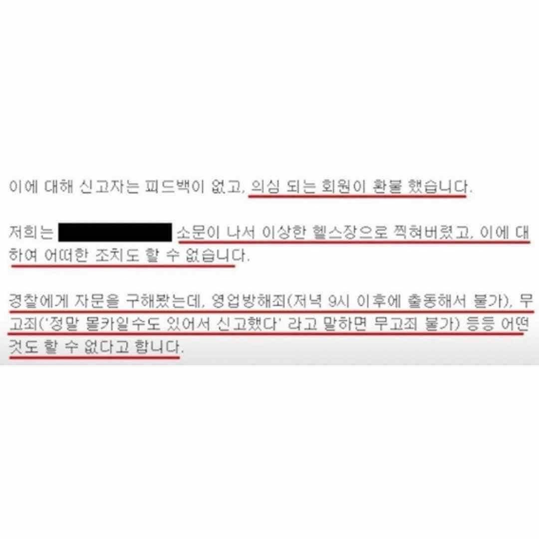 피해망상 있는 여자가 신고한 헬스장 사건
