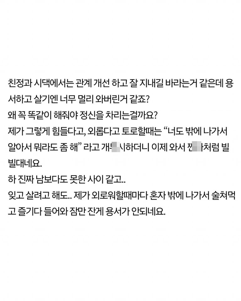 유흥문제, 눈눈이이 해줬더니 이제와 잘못했대요