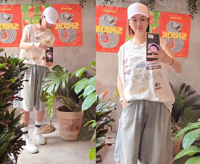 여기에 더해진 화이트 볼캡은 전체 코디에 포인트를 주면서도 실용성을 챙긴 선택이었어요. 얼굴을 작아 보이게 하는 효과는 물론, 민낯에도 스타일리시하게 연출해주는 마법 같은 아이템이죠.