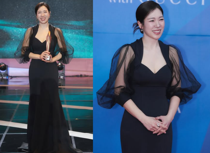 최근 염혜란은 백상예술대상에서 블랙 드레스를 입고 등장했는데, 드레스 팔 부분은 퍼프 디테일에 시스루로 우아함과 화려함을 동시에 잡았습니다. 머메이드 핏의 드레스는 그녀의 몸매를 돋보이게 하며, 고급스러움과 우아함을 한층 더 강조했습니다.