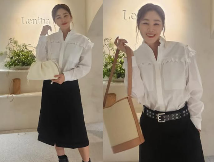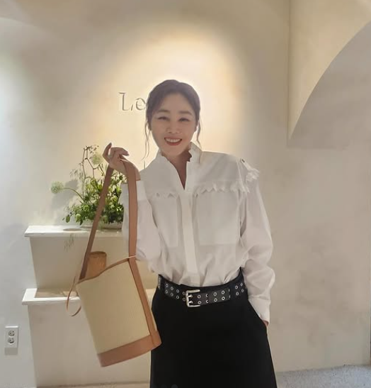 최근 김성령은 화이트 셔츠에 미디 기장의 블랙 스커트를 매치해 눈길을 끌었습니다. 심플한 조합이지만, 벨트로 포인트를 주어 세련되면서도 힙한 무드를 연출했고, 여름 시즌에 어울리는 라탄 소재의 버킷백을 더해 캐주얼한 매력을 살렸죠.