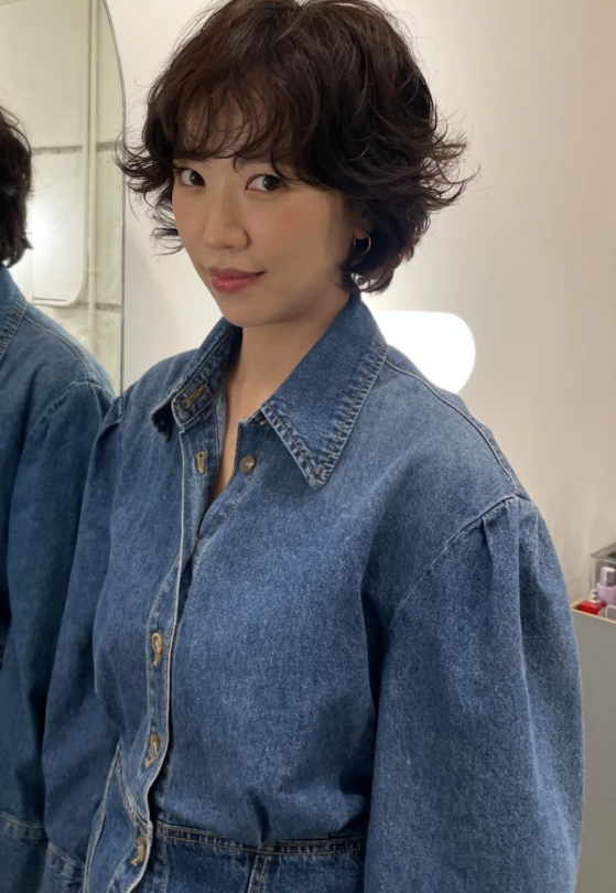 전혜진 님의 숏컷 헤어는 펌으로 스타일링되어 보이시하면서도 러블리한 매력을 더해주었어요. 숏컷은 시원하고 깔끔한 느낌을 주면서도, 펌 디테일이 그녀의 얼굴을 더욱 돋보이게 해주었죠.