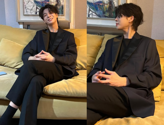 최근 정동원은 블랙 수트룩으로 성숙한 매력을 선보였습니다. 검정 자켓에 블랙 티셔츠, 슬랙스를 매치해 깔끔하면서도 차분한 인상을 남겼죠. 특히 자켓 카라에는 은은한 실크 디테일이 더해져 고급스러움을 놓치지 않았습니다.