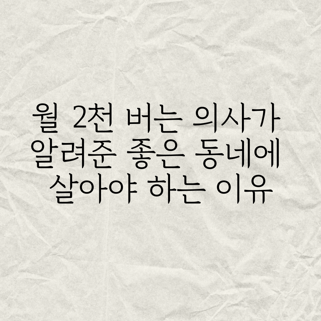 월2천 버는 의사가 경험한 좋은 동네에 살아야 하는 이유