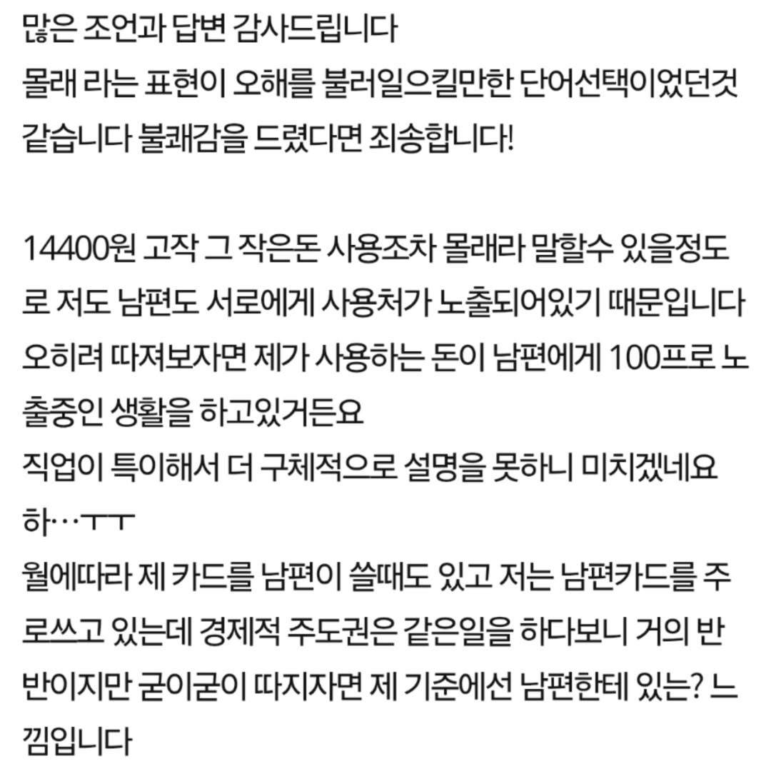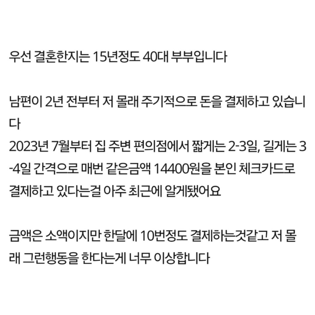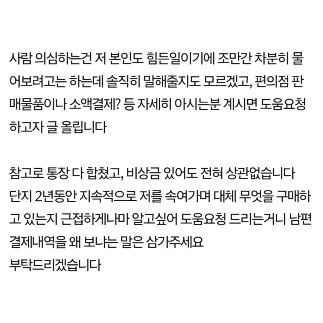 남편이 2년전부터 저 몰래 돈을 쓰고있었어요