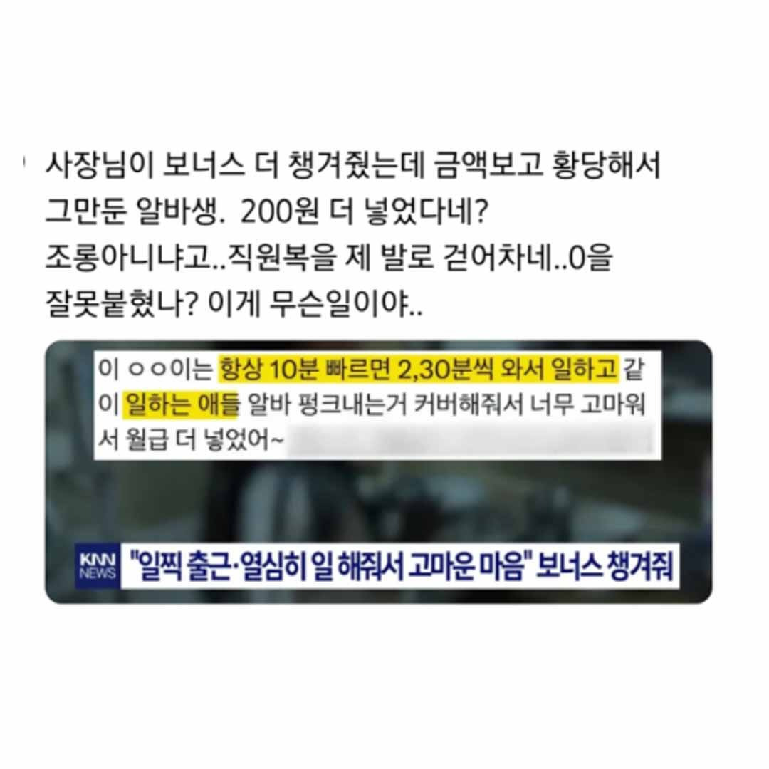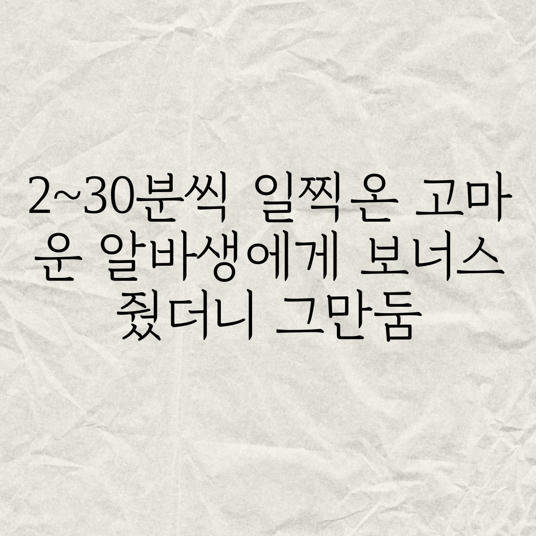 2-30분씩 일찍온 고마운 알바생에게 보너스 줬더니 그만둠