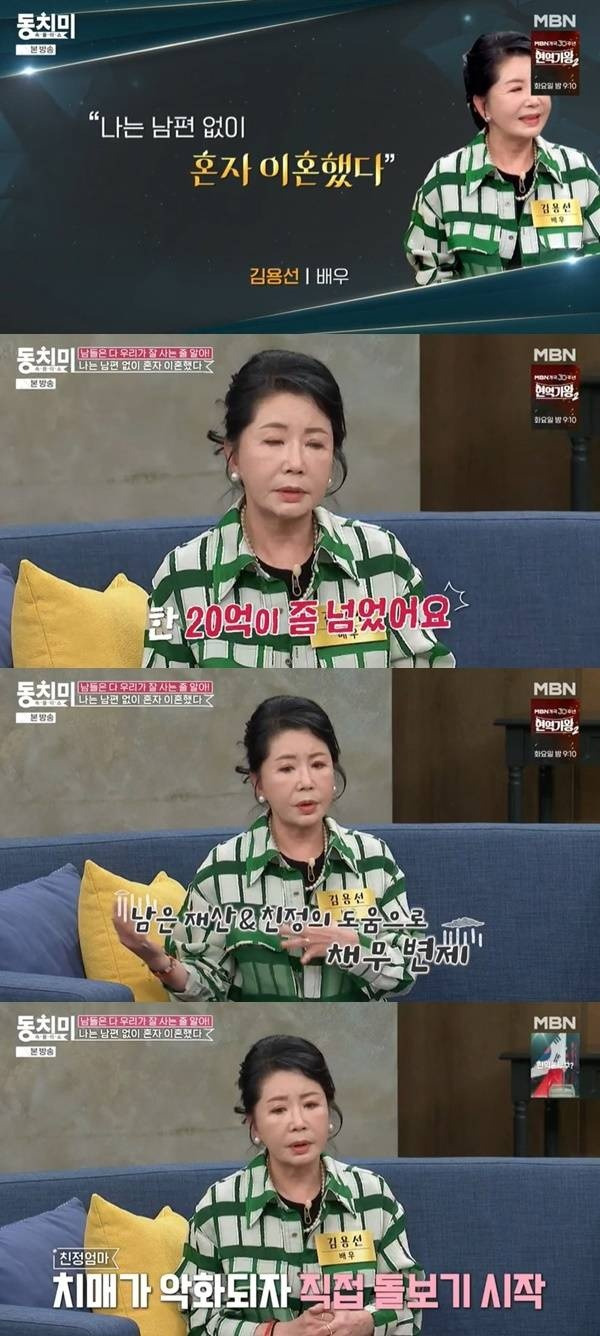 김용선은 MBN ‘속풀이쇼 동치미’에 출연해 자신의 아픈 과거를 털어놨다. 지인의 소개로 만난 남편과 결혼 생활을 시작했지만, 예상치 못한 시련이 기다리고 있었다.