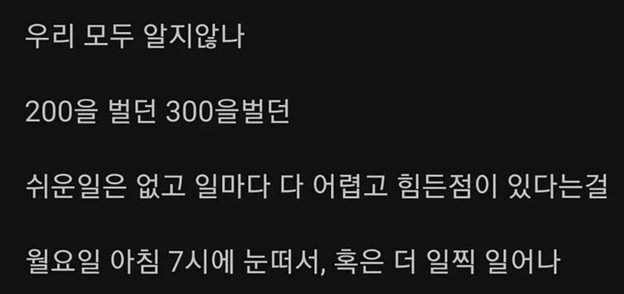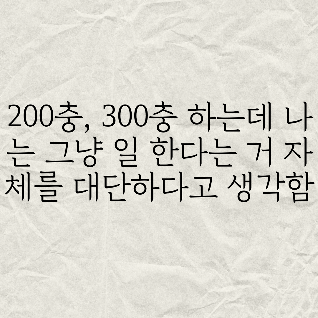 200충, 300충 하는데 나는 일 하는거 자체가 대단하다고 생각함