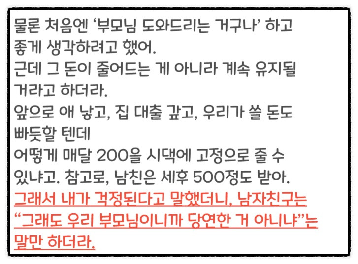 시댁에 매달 200만원? 결혼, 다시 생각해봐야 할까요?