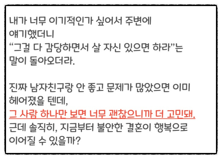 이런 상황은 예비 부부에게 깊은 고민을 안겨줍니다. 사랑으로 시작해야 할 결혼이 의무감으로 시작될 수 있다는 불안감은, 앞으로의 결혼 생활에 큰 영향을 미칠 수 있습니다.