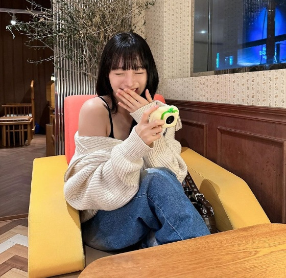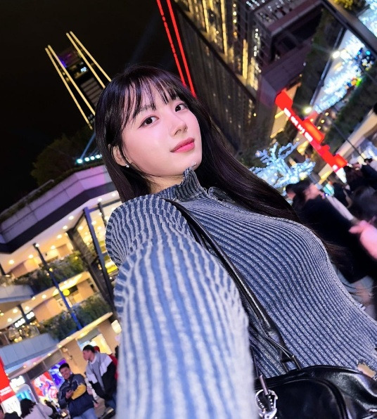 일본 여행 중 찍힌 사진에서는 자연스럽게 흘러내린 헤어, 루즈핏 셔츠, 데님 스타일을 선보였는데요. 누가 봐도 현지 모델 느낌! 해외여행 룩마저 레퍼런스가 됩니다.