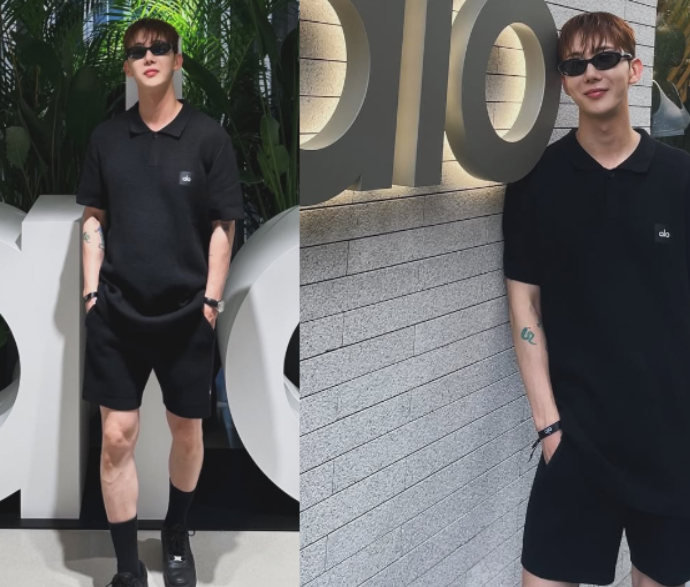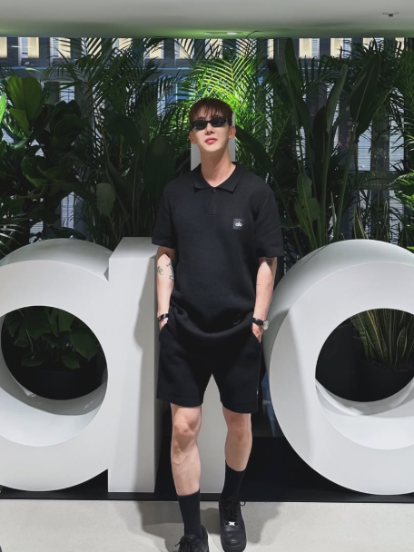 최근 조권은 스타일 면에서도 남다른 존재감을 드러냈는데요. 이번에 선보인 조권의 올블랙룩은 간결하면서도 세련된 분위기를 자아냈어요. 카라가 달린 블랙 반팔 티셔츠에 쇼츠, 그리고 깔끔한 블랙 스니커즈를 매치해 무심한 듯 멋스러운 무드를 완성했죠. 여기에 선글라스를 매치해 심플하지만 임팩트 있는 여름 패션을 보여주었습니다.