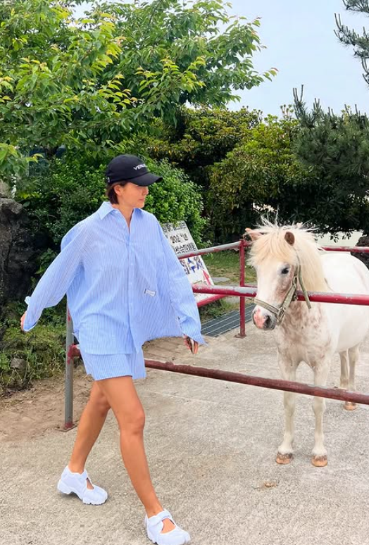 클럽에서 만나 3개월 연애하고 결혼' 독보적인 카리스마 여배우 진서연 님의 셋업룩을 소개해드렸는데요. 상큼한 블루 컬러와 스트라이프 패턴이 여름 분위기와 잘 어울리며, 편안하면서도 스타일리시한 데일리 룩을 제시한 진서연 님만의 감각적인 패션이었어요!
