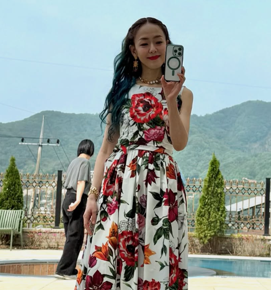김윤아 님의 이번 꽃무늬 셋업룩은 화사한 매력이 가득한 스타일이었어요. 큰 꽃패턴이 돋보이는 디자인으로 그녀의 독특하고 우아한 감각을 잘 표현한 패션이었습니다.