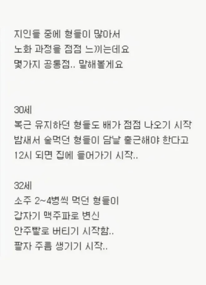 내가 본 30대 노화과정 몇가지 공통점