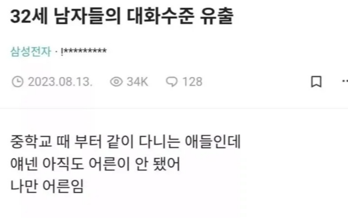 32세 남자들 대화 수준 유출한 섬성전자맨