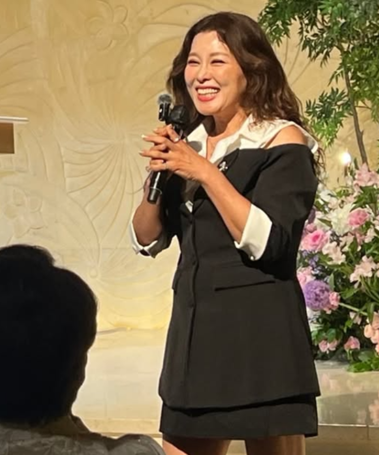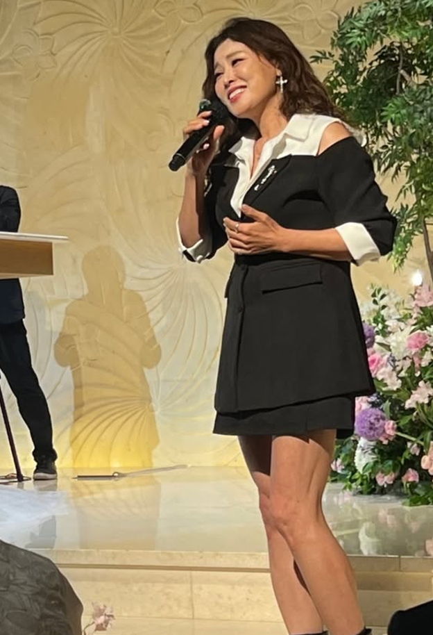 홍지민 님은 최근 한 결혼식에 하객으로 참석해 또 한 번 놀라운 비주얼을 자랑했는데요. 블랙 컬러의 자켓과 미니 스커트를 매치해 시크하고 세련된 하객룩을 완성했습니다.
