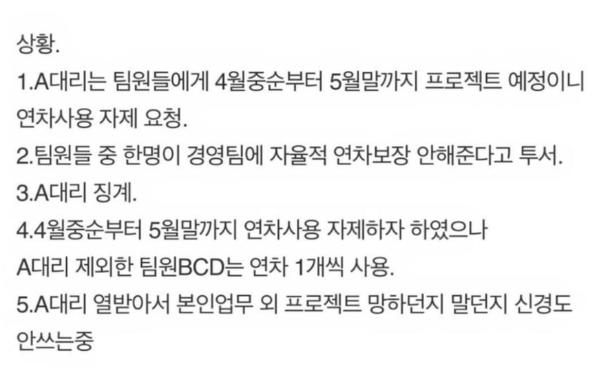 40일 프로젝트 중 연차 못쓰게 한 대리
