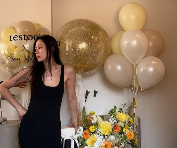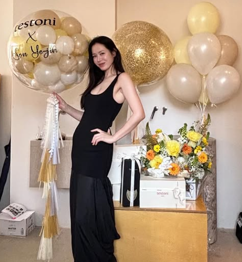 손예진 님은 블랙 나시 드레스로 심플하면서도 세련된 룩을 완성했어요. 이 드레스는 시스루 디테일이 들어간 밑단과 깊게 파인 네크라인으로 팔과 어깨 라인을 자연스럽게 드러냈죠.