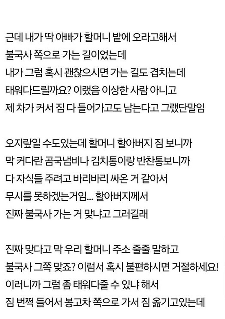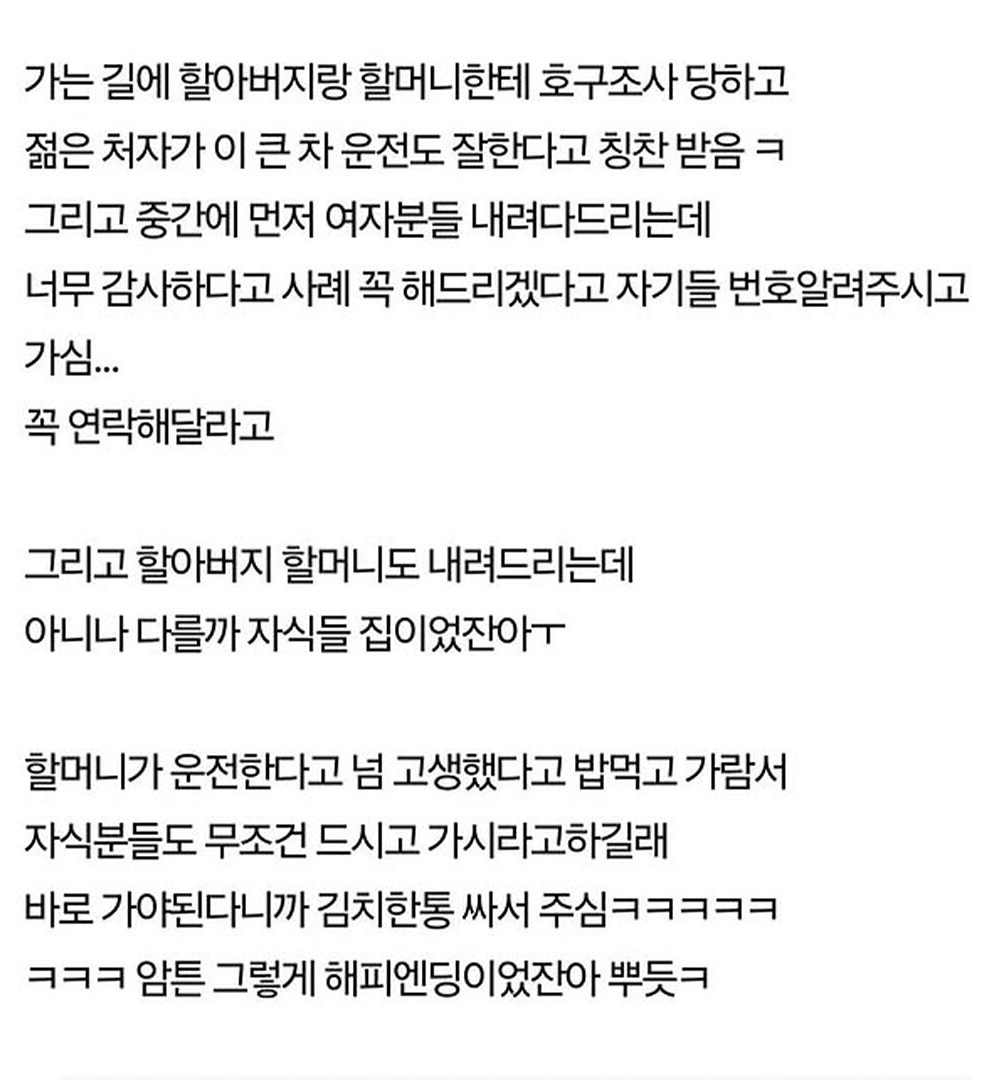 방금 봉고차로 모르는 사람 5명 태워다 줌