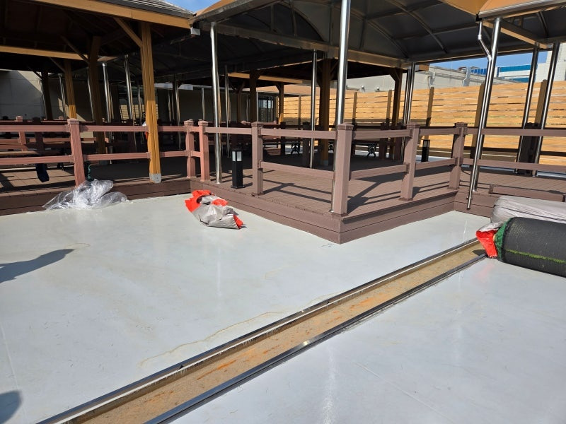 사진에서 보시는 것처럼, 옥상은 여러 구조물로 인해 복잡한 모습이었죠. 하지만 걱정은 No! 신광매트 시공팀의 숙련된 기술이라면 어떤 난관도 극복할 수 있다는 믿음이 있었으니까요.
